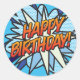 Pegatina Redonda FELIZ libro de cómics retro de cumpleaños