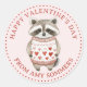 Pegatina Redonda Feliz mapache acuarela del Día de San Valentín
