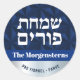 Pegatina Redonda Feliz marina purim y hebreo de lujo plateado