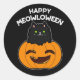 Pegatina Redonda Feliz Meowloween Funny Halloween Pun Dark BG