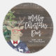 ¡Feliz ciervo navideño! Un fondo rústico de madera con un ciervo festivo en un puente de navidades y luces brillantes sobre el diseño de sus cornisas y un toque de purpurina falso para un brillo festivo. Edite o elimine el texto de nombres según sea necesario. ¡Invitaciones coincidentes en la tienda!