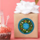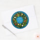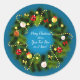Pegatina Redonda Feliz Navidad 20XX Añadir texto Azul guirnalda ver