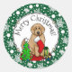 Pegatina Redonda Feliz Navidad 2 Goldendoodle (rojo dorado) Cute