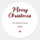 Pegatina de Ronda Clásica de Feliz Navidad manuscrito rojo
