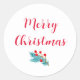 Pegatina Redonda Feliz Navidad acuarela Sprue y Berries Rojas