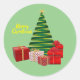 Pegatina Redonda Feliz Navidad ~ Árbol con regalos