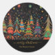 Pegatina Redonda Feliz Navidad Árboles coloridos
