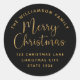 Feliz Navidad Negro Oro Clásico Pegatina de Ronda. Purpurina de oro falso Feliz Navidad con tu nombre personalizado y el texto de la dirección.