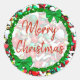 Pegatina Redonda Feliz Navidad Blanco, Navidad Verde Rojo Espolvore