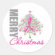 Pegatina Redonda Feliz Navidad Cáncer de mama Cinta rosa Wreath