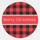Pegatina Redonda Feliz Navidad Clásico Red & Black Buffalo Plantado