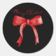 Pegatina Redonda Feliz Navidad Coquette Roja Bow Merry Y Brillante