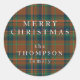 Pegatina Redonda Feliz Navidad Cosy Marina y Naranja Plaid Flannel