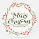 Feliz crema de navidad y escritura verde oscuro con un rústico arbolado verde oscuro y rojo marco de corona floral frontera alegres adorables pegatinas, etiquetas, sellos para sobres, etiquetas de regalo, favorecer a los pegatinas. Personalizable moderno texto de escritura verde oscuro, color crema claro editable. Compruebe que el resto de la colección coordina y equipara los artículos y los suministros y decoraciones de fiestas adicionales.