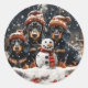 Pegatina Redonda Feliz Navidad Dachshund Perros Snowman