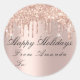 Pegatina Redonda Feliz Navidad Desde A Vacaciones Chispa Rosa Glam