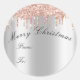 Pegatina Redonda Feliz Navidad Desde A Vacaciones Chispas Rosa Gris