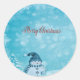 Pegatina Redonda Feliz Navidad, dulce árbol de pino de nieve