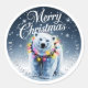 Pegatina Redonda Feliz Navidad, dulce osito polar y Personalizado d