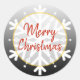 Pegatina Redonda Feliz Navidad en Black and White Snowflake