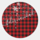 Pegatina Redonda Feliz Navidad en Escritura Manuscrita Nevando