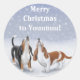 Pegatina Redonda Feliz Navidad en los Basset Hounds