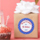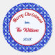 Pegatina Redonda Feliz Navidad Familia Azul Vidrio Manchado