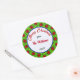 Pegatina Redonda Feliz Navidad Familia Roja y Verde