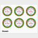 Personalizar tus propios stickers de Navidad con esta hermosa plantilla con poinsettia/estrellas rojas y fondo verde. El nombre de la familia y el año son editables.