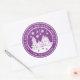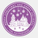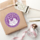 Feliz Navidad Felices Fiestas Invierno Nombre personalizado Etiquetas de adhesivos presenta el texto "Feliz Navidad y Felices Fiestas" en un moderno guión blanco con fondo morado y personalizado con tu nombre rodeando un hogar con árboles de Navidad y copos de nieve. Perfecto para Navidades de fiestas y regalos de vacaciones o en la oficina para productos o correo. Diseñado por ©Evco Studio www.zazzle.com/store/evcostudio