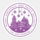 Feliz Navidad Felices Fiestas Invierno Nombre personalizado Etiquetas de adhesivos presenta el texto "Feliz Navidad y Felices Fiestas" en un moderno guión morado y personalizado con tu nombre rodeando un hogar con árboles de Navidad y copos de nieve. Perfecto para Navidades de fiestas y regalos de vacaciones o en la oficina para productos o correo. Diseñado por ©Evco Studio www.zazzle.com/store/evcostudio