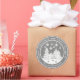Feliz Navidad Felices Fiestas Invierno Nombre personalizado Etiquetas de adhesivos presenta el texto "Feliz Navidad y Felices Fiestas" en escritura blanca moderna con un fondo plateado y personalizado con tu nombre rodeando un hogar con árboles de Navidad y copos de nieve. Perfecto para Navidades de fiestas y regalos de vacaciones o en la oficina para productos o correo. Diseñado por ©Evco Studio www.zazzle.com/store/evcostudio