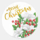 Pegatina Redonda Feliz Navidad Floral Blanco Rojo Verde