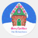 Pegatina Redonda Feliz Navidad Gingerbread House Elegante Azul