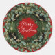 Pegatina Redonda Feliz Navidad Green Wreath Winter Red Woodland
