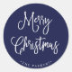 Pegatina Redonda Feliz Navidad | Guión manuscrito en azul marino