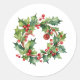 Pegatina Redonda Feliz Navidad Holly Berry Wreath