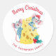 Pegatina Redonda Feliz Navidad Holly Cheese Mice Personalizado