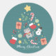 Pegatina Redonda Feliz Navidad: Ilustracion de gato y árbol