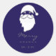Pegatina Redonda Feliz Navidad Invierno Silver Blu Navy Santa