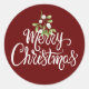 Pegatina Redonda Feliz Navidad Mistletoe Burgundy Elegant Script