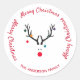 Pegatina Redonda Feliz Navidad moderno y divertido reno blanco
