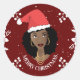 Pegatina Redonda Feliz Navidad, Mujer Negra Red Santa Hat, Maroon