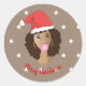 Pegatina Redonda Feliz Navidad! Mujer negra, Santa Hat, Gum, Star