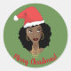 Pegatina Redonda Feliz Navidad, Mujer Negra, Sombrero Red Santa, Ve