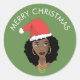 Pegatina Redonda Feliz Navidad, Mujer Negra, Sombrero Red Santa, Ve