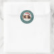 Pegatina Redonda Feliz Navidad ondulado frontera foto verde de pino