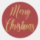 Pegatina Redonda Feliz Navidad Oro Rojo Simple Elegante