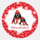 Pegatina Redonda Feliz Navidad. Pequeños pingüinos divertidos