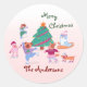 Pegatina Redonda Feliz Navidad Perro Patinaje sobre hielo Nombre Re